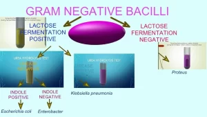 - Lectore fermenter on MacConkey’s agar: (Urease (-), Citrate (-), Motile E. coli), (Urease (+), Citrate (+), Non motile klebsiella).
