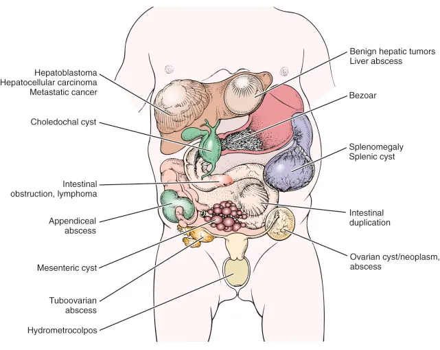Differential diagnosis of abdominal masses, and Is an abdominal mass always cancer