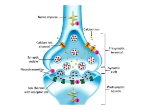 When an impulse reaches the presynaptic terminals, there is an interval of, at least, 0.5 millisecond before the response is obtained in the postsynaptic neuron. This time is needed for the release of the neurotransmitter, its diffusion across the synaptic cleft, its binding to the post-synaptic receptors, Na+ influx to produce the EPSP, and summation of the EPSPs to the threshold value.