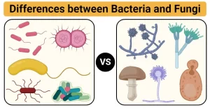 - Fungi are eukaryotes (the fungal cell has a membrane-bound nucleus) while bacteria are prokaryotes.