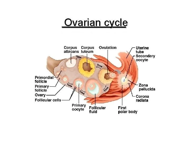 Ovulation is the rupture of the mature follicle and liberation of the ovum. Ovulation in a woman with a normal 28-day cycle occurs 14 days after the onset of menstruation. It is stimulated by a surge in pituitary LH production. As the amount of liquor folliculi in the antrum increases, the oocyte and its surrounding zona pellucida and corona radiate detach from the cumulus oophorus, and float in the antrum.