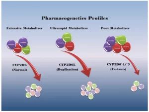 CYP2D6 gene encodes an enzyme metabolizing a drug with selective serotonine release inhibitor (example prozac) to treat anexiety & depression, Rapid metabolizers need a larger dose of antipsychotic drug to exert good response while slow metabolizers need a smaller dose of the drug to avoid side effects