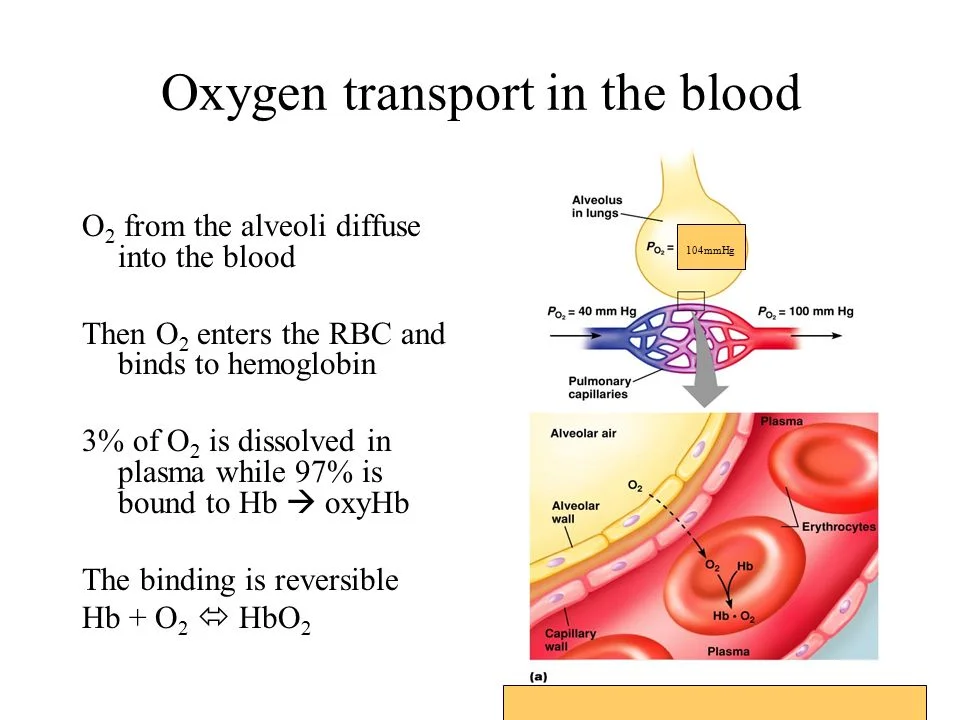 • The relation between O₂ pressure and O₂ in physical solution is a linear relationship i.e. any increase in O₂ in physical solution leads to an increase in O₂ pressure.