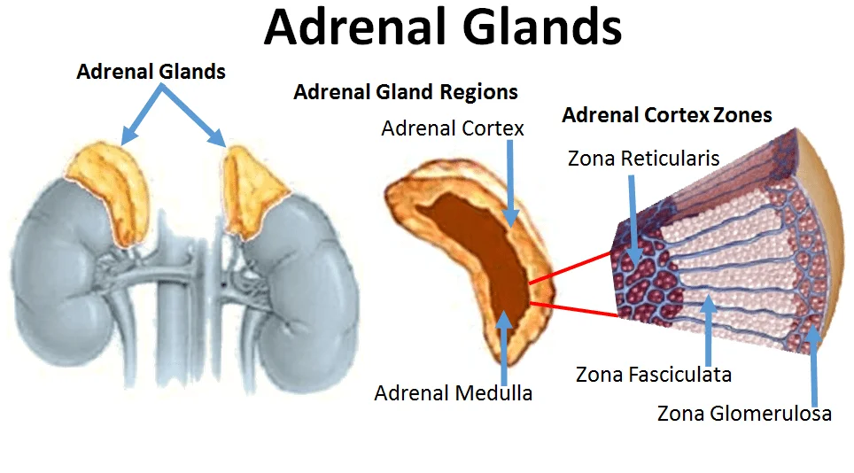Suprarenal glands (adrenal glands) anatomy, structure and Effect of Deficiency of Catecholamines