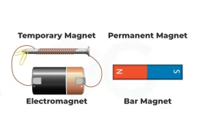 The electromagnet is a temporary magnet that is made by the effect of electricity, It consists of a bar wrought (soft) iron, A twisted copper wire coiling around the bar of iron, and a dry cell (battery), When the electric current passes through the wire, the bar of the wrought iron works as a magnet.