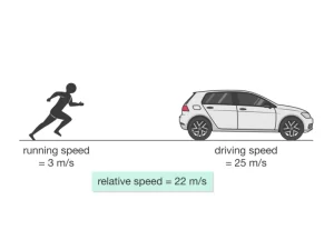 Therefore, The speed of the car (A) relative to the static observer= 100 km/h. The speed of the car (B) relative to the observer= 80 km/h. the speed of the car (A) relative to an observer in the car (B)= 100- 80 = 20 km/h. You notice that the speed of the car (A) relative to the static observer differs from its speed relative to an observer in the car (B).
