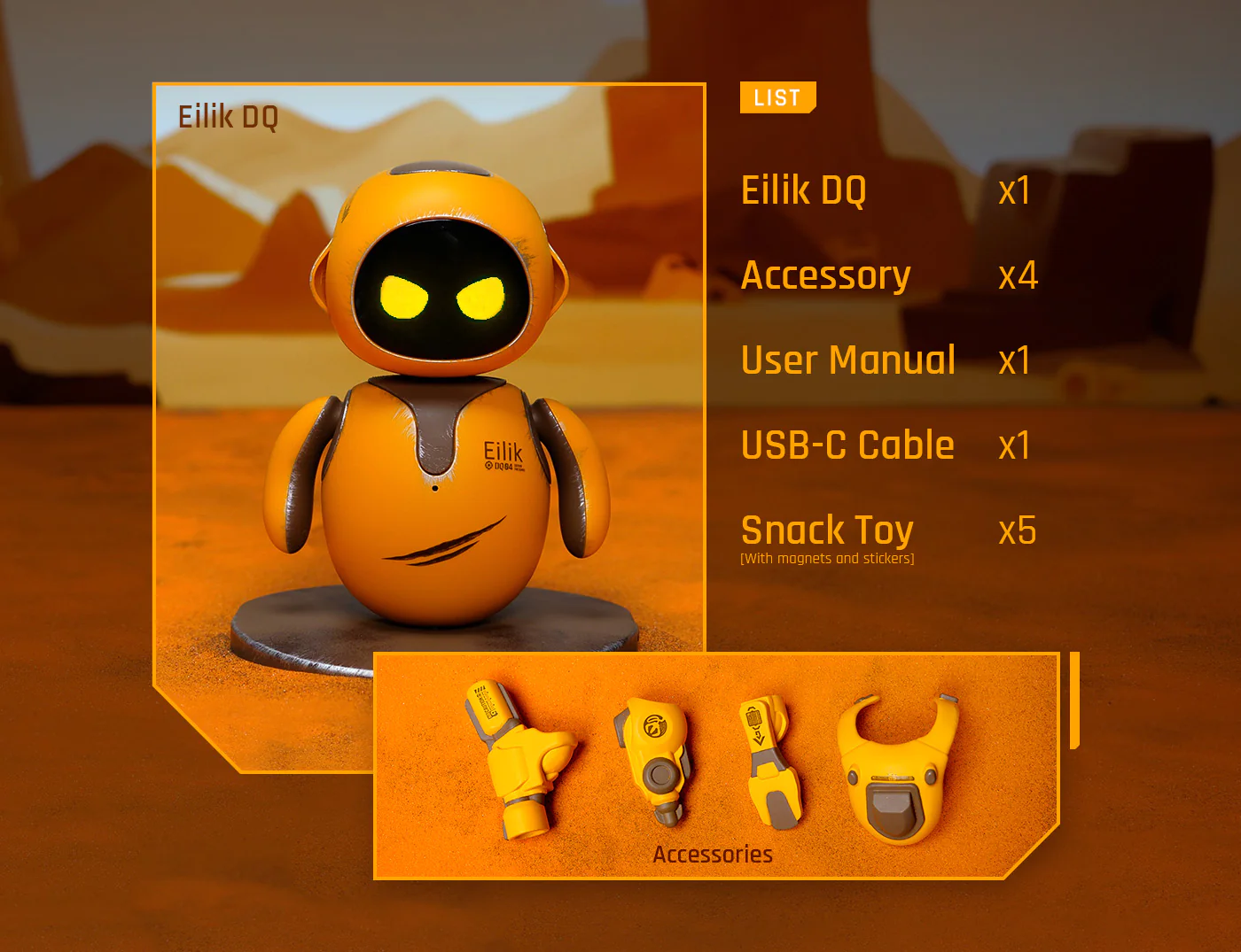 Eilik DQ robots are affordable, The unboxing experience of an Eilik DQ robot is half the fun. Eilik DQ robots come packaged in colorful boxes with unique designs that are sure to excite children. They can be a great way for kids to make new friends. By sharing their robots with others, kids can build relationships and have fun together.