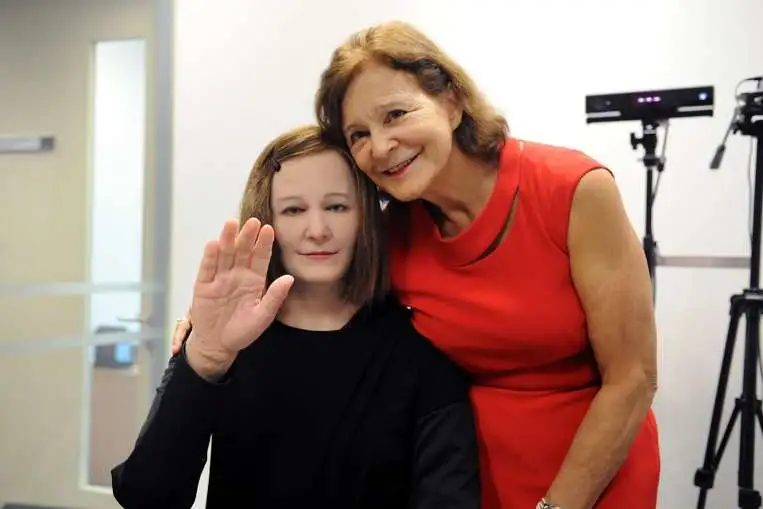 Nadine is programmed with a “personality” that allows her to show emotions through facial expressions and gestures. She might smile, frown, or adjust her body language depending on the conversation.
