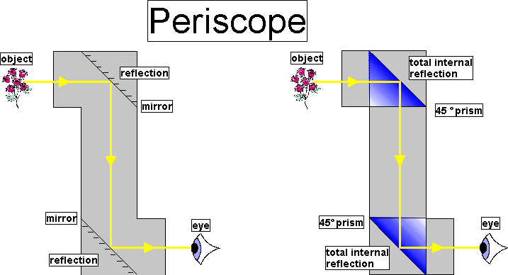 The periscope is an instrument for observation, It consists of a tube with mirrors at each set parallel to each other at a 45-degree angle, with the addition of two simple lenses, and it depends on the occurrence of regular light reflection on the plane mirrors.