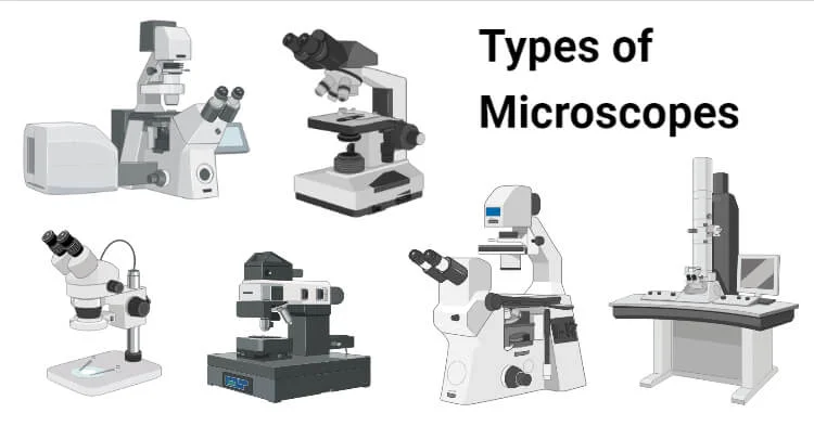 There are many types of microscopes, The most common microscope is the optical microscope, which uses lenses to refract visible light that passes through a thinly sectioned sample to produce an observable image. Other major types of microscopes are the fluorescence microscope, electron microscope (both the transmission electron microscope and the scanning electron microscope), and various types of scanning probe microscopes.