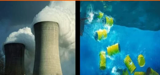Thermal pollution: It is because of increasing the temperature of some water areas which are used in cooling the nuclear reactors, and it causes the death of the marine creatures due to the separation of the dissolved oxygen from the water.