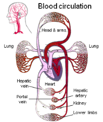 Blood circulation is the path of the blood throughout the body. It can be divided into two small circulations which are minor (pulmonary) blood circulation, and major (systemic) blood circulation.