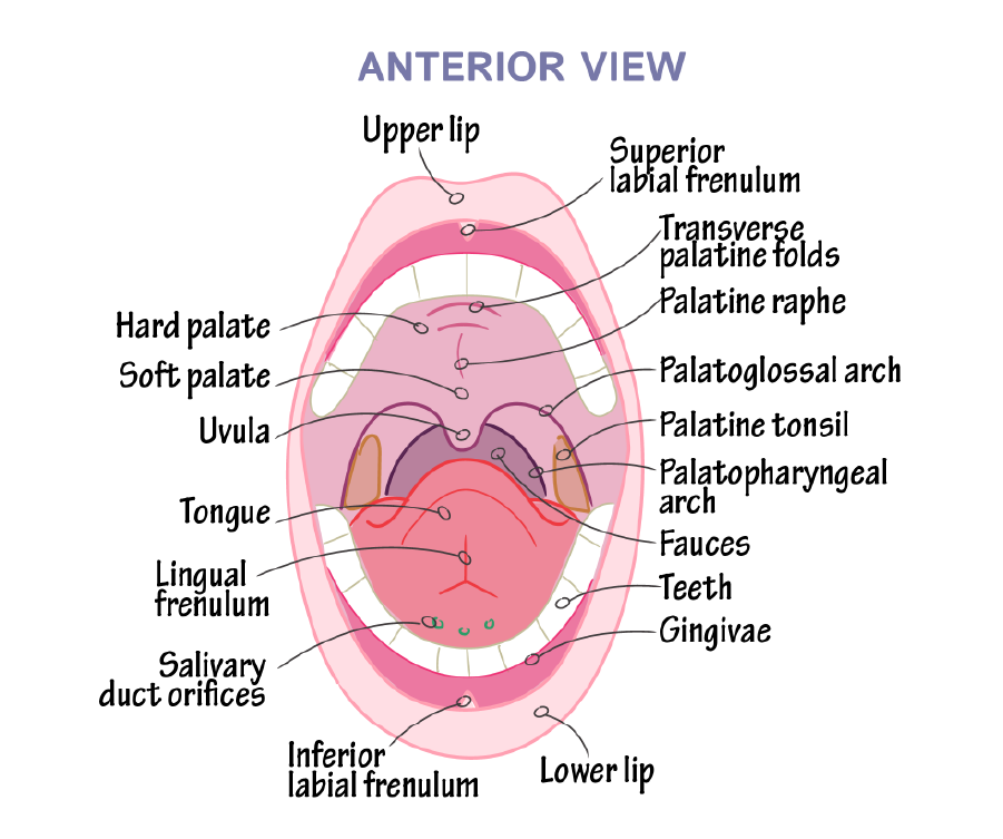 Mouth Cavity divisions, anatomy, function, muscles, Contents of Soft palate and Hard palate