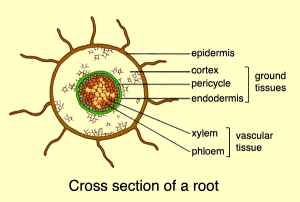 The root hairs extend from the epidermis cells of the root, they are lined from inside with a thin layer of cytoplasm, and each root hair has a big vacuole that contains the salt solution.