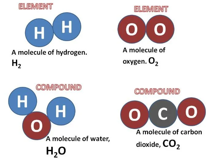 The compound molecule is formed of different atoms that combine together, The compound is a substance that is formed from the combination of atoms of two or more different elements with constant weight ratios, Examples of some known compounds: